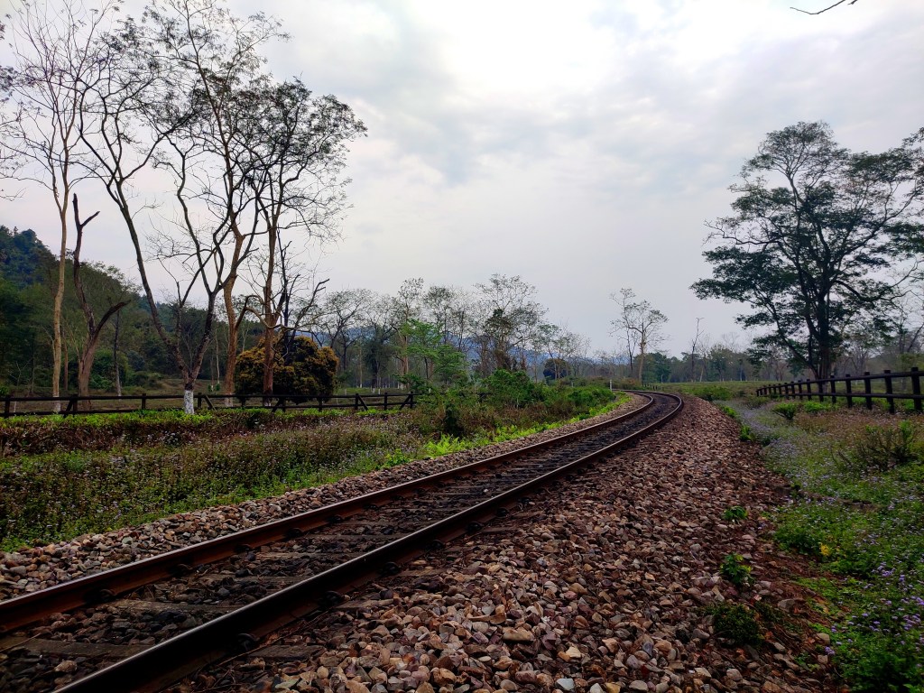 Ellenbarrie Tea Garden, a privately owned tea estate between National Highway 17 and the Teesta River (Malbazar, Jalpaiguri District of West Bengal, India). A railroad stands in the middle of a tea garden, alone while the tea plantations and their underpaid workers remain indifferent.